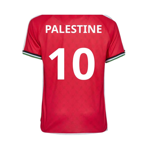 قميص المنتخب الفلسطيني الأحمر الرسمي - رمز الفخر والانتماء. مصنوع من أقمشة مريحة، مثالي للمشجعين